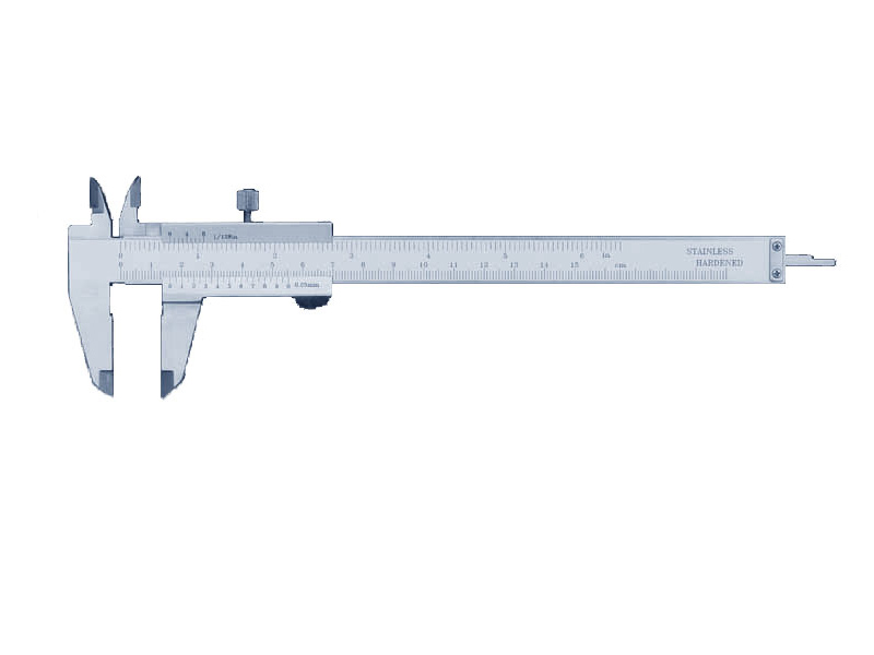 Stainless steel, hardened throughout. Satin chrome finished vernier and main scale with jet black graduations for
